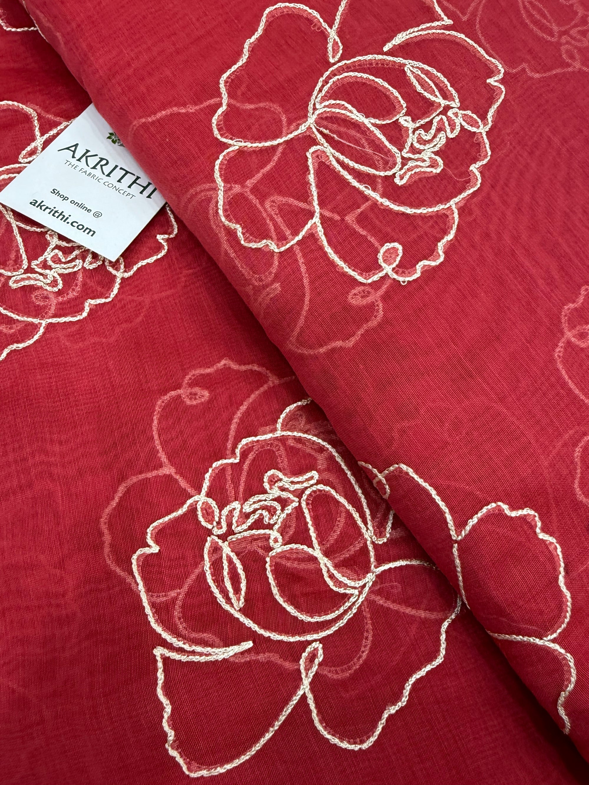 MUL CHANDERI EMBROIDERED TISSUE FABRIC