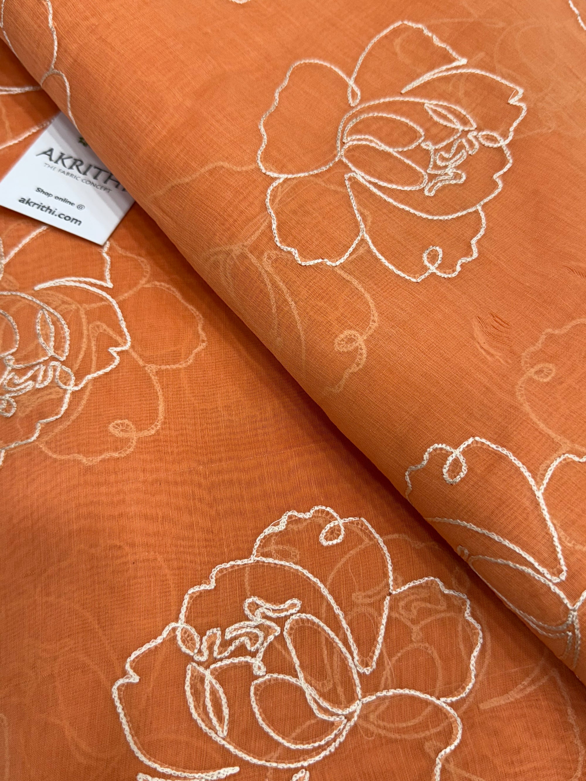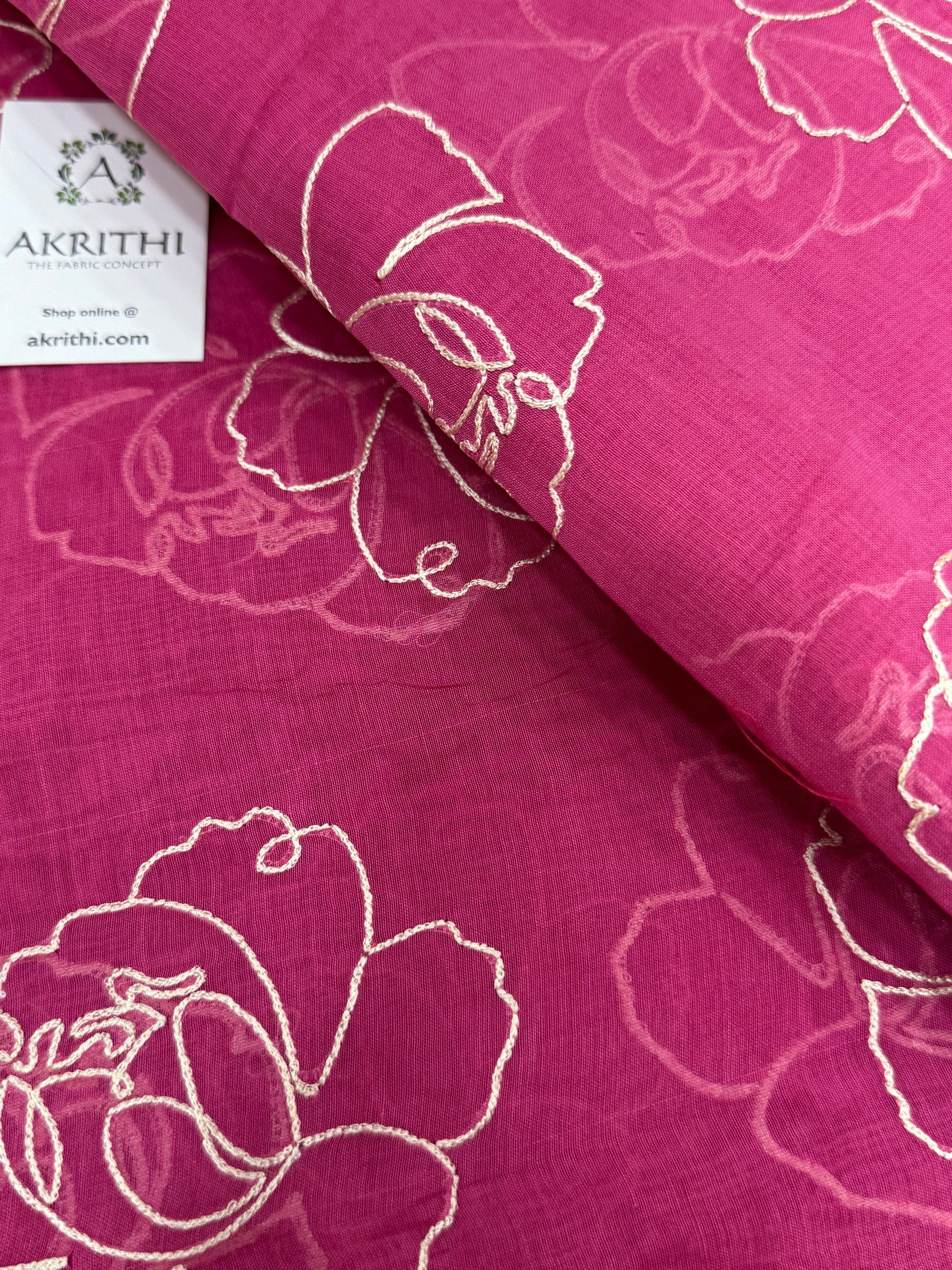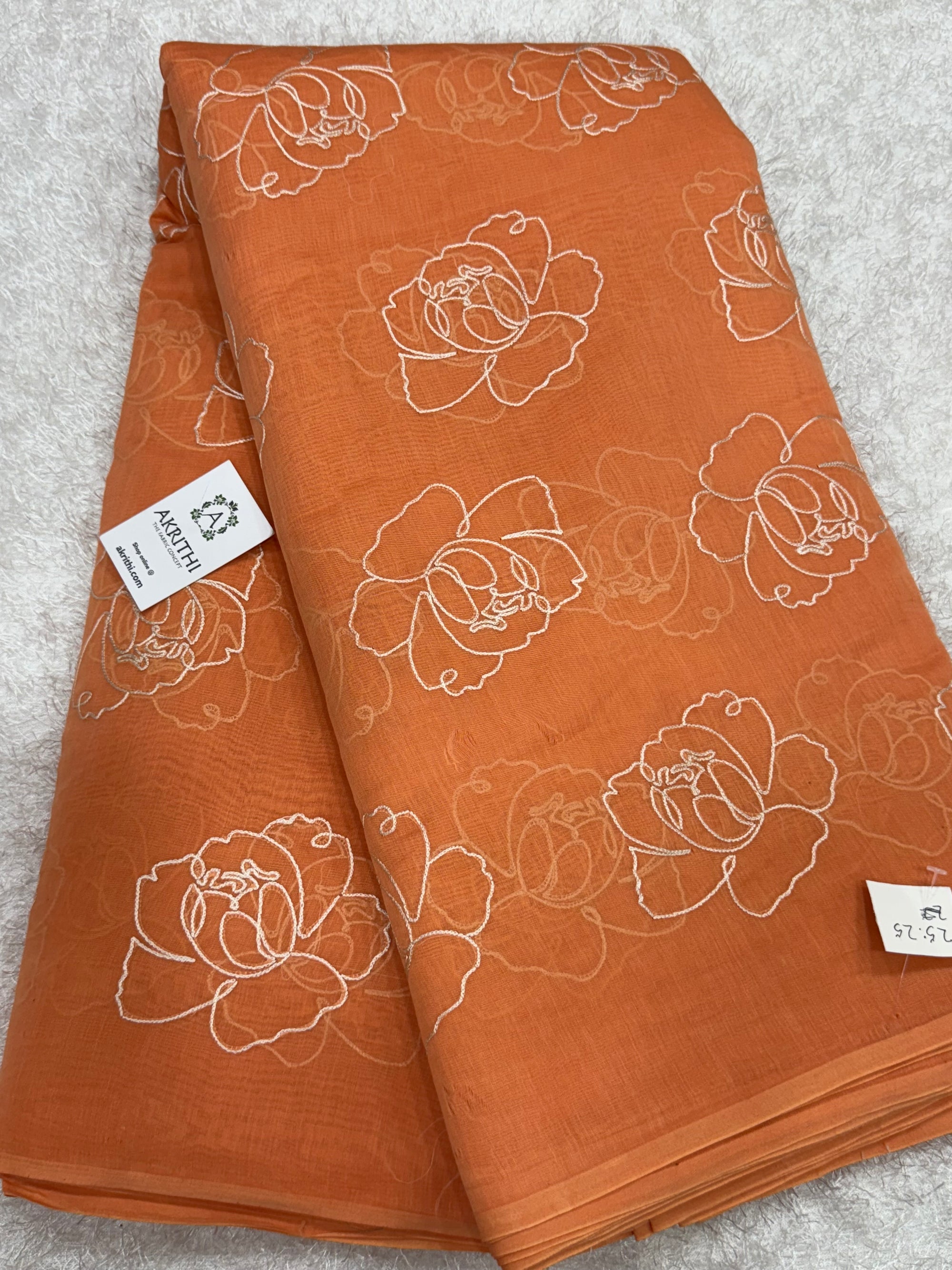 MUL CHANDERI EMBROIDERED FABRIC 65 CM CUT PIECE