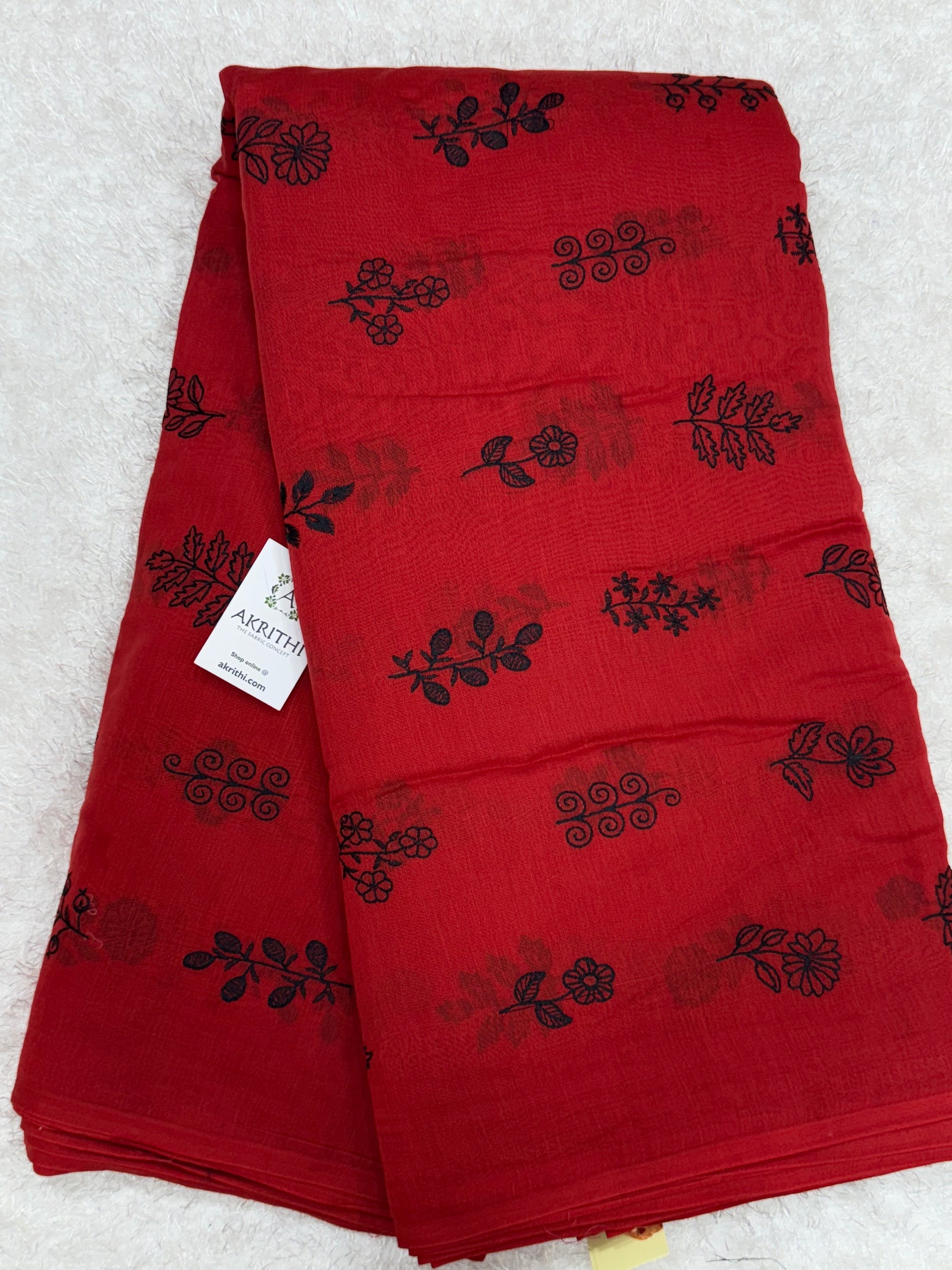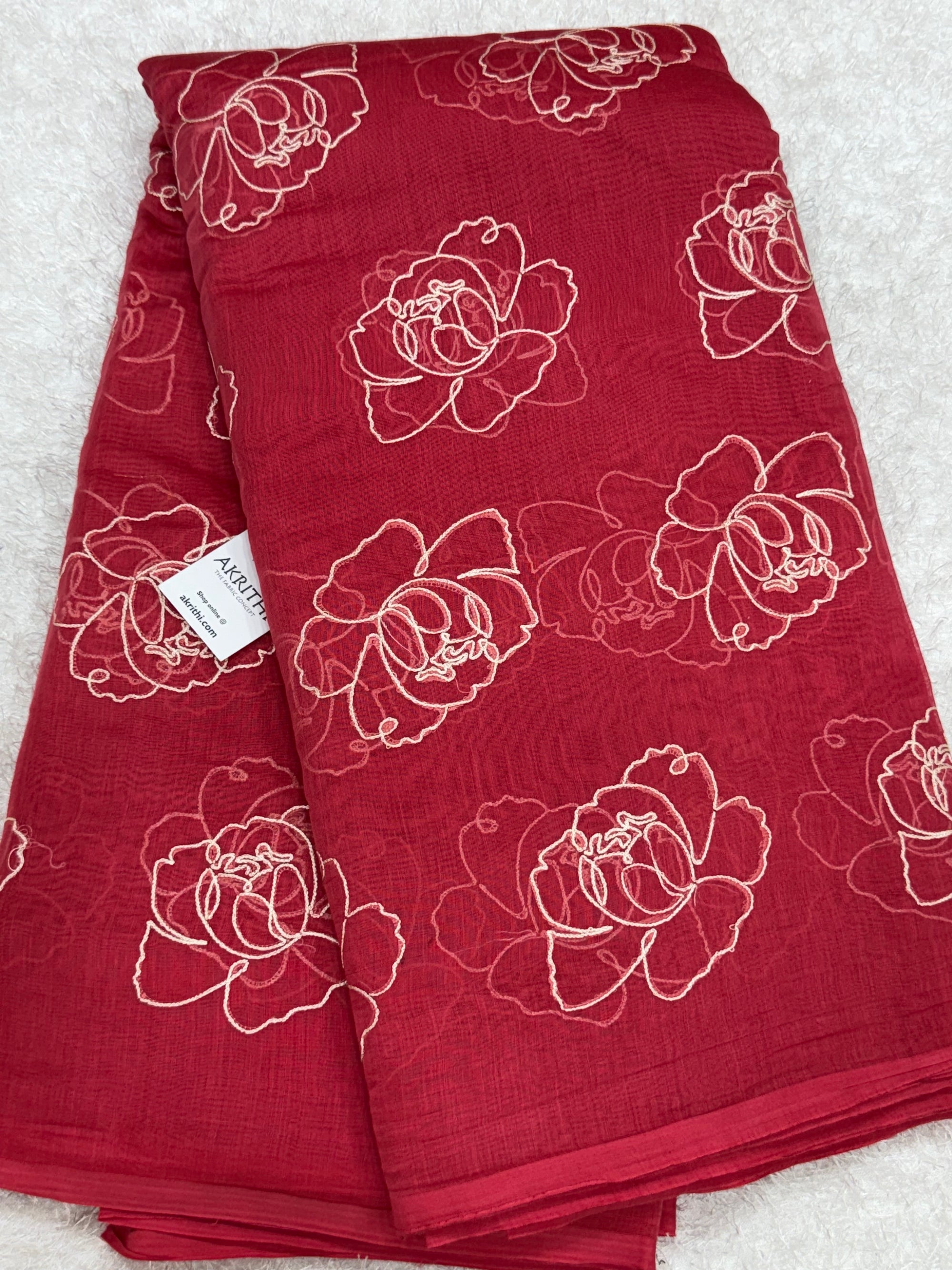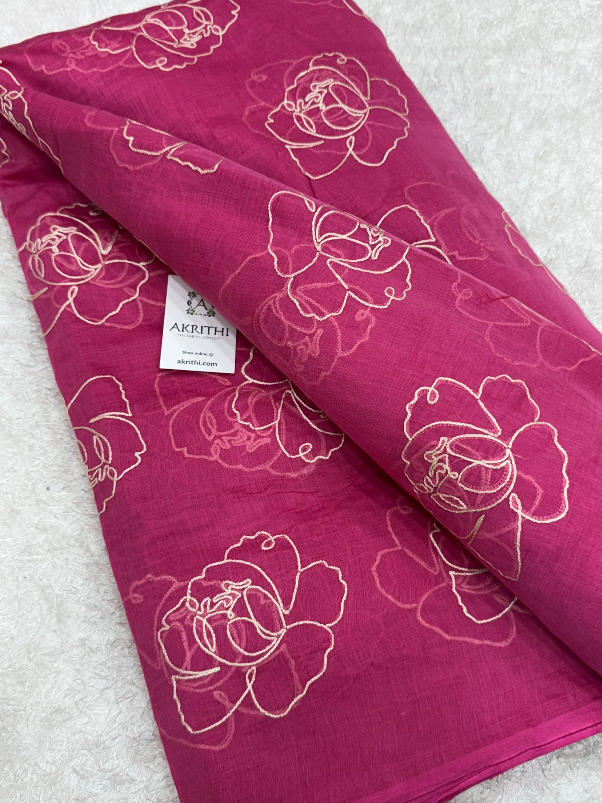 MUL CHANDERI EMBROIDERED FABRIC 65 CM CUT PIECE