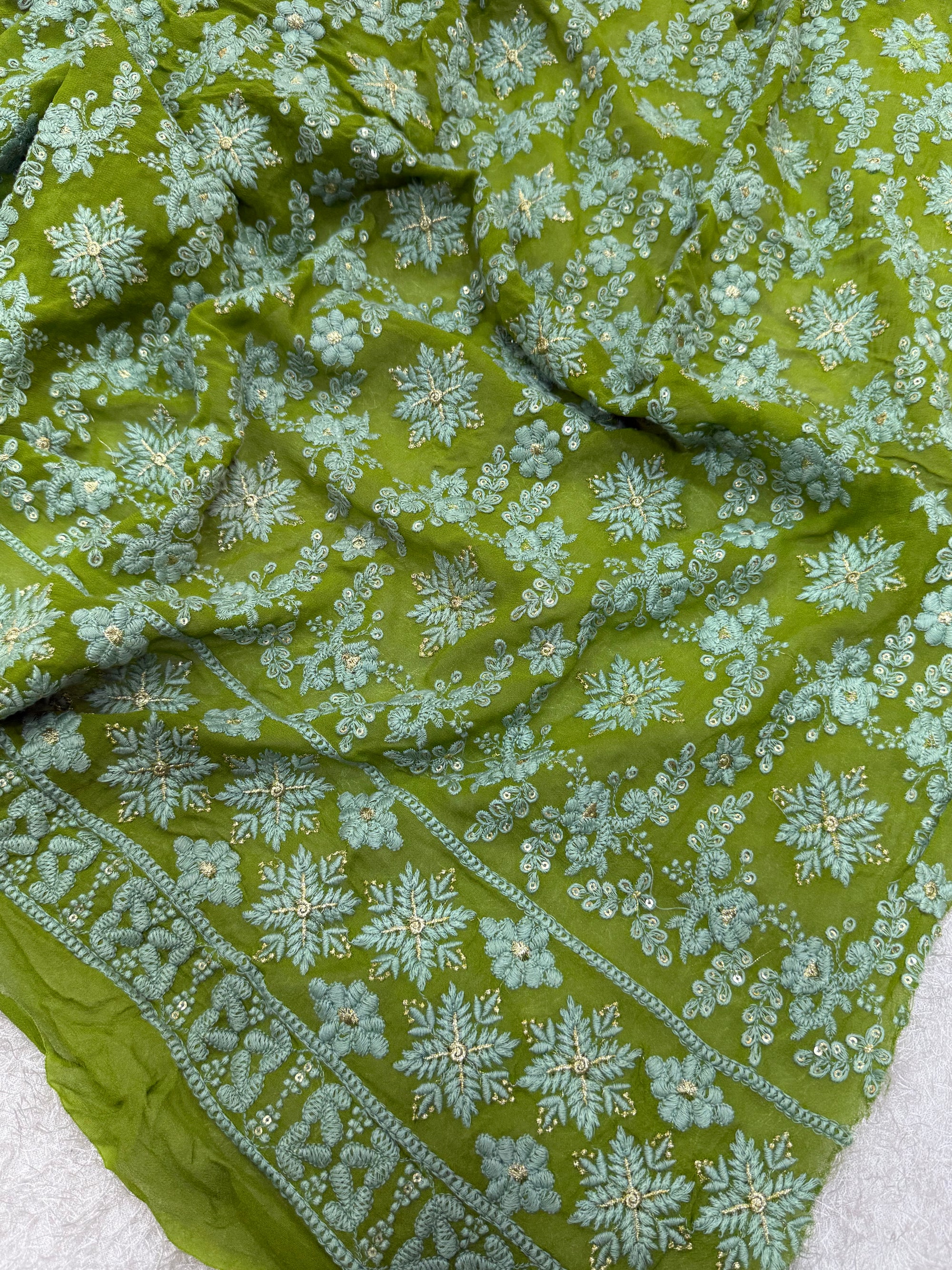 Embroidery on pure georgette fabric 1 metres cut