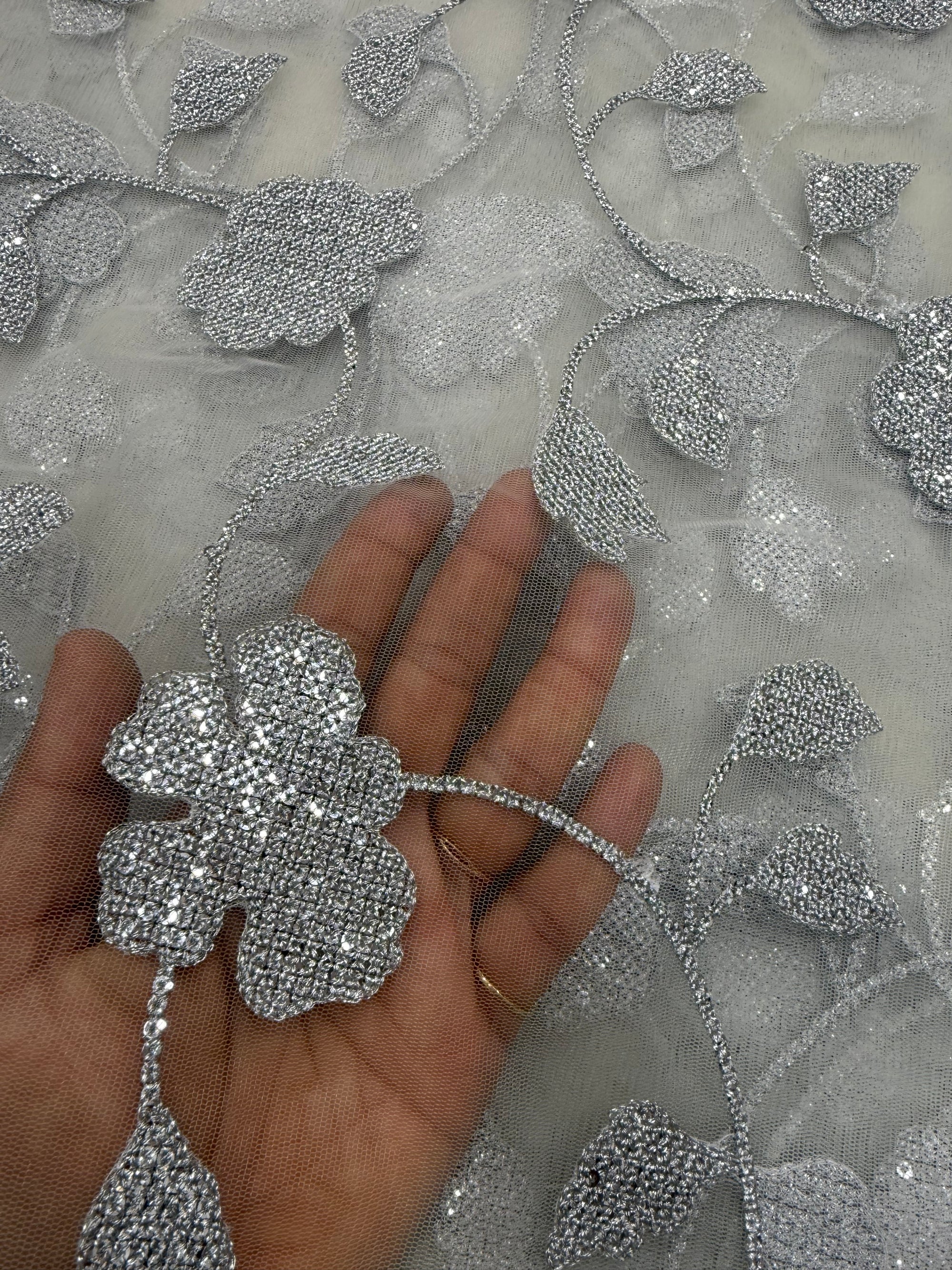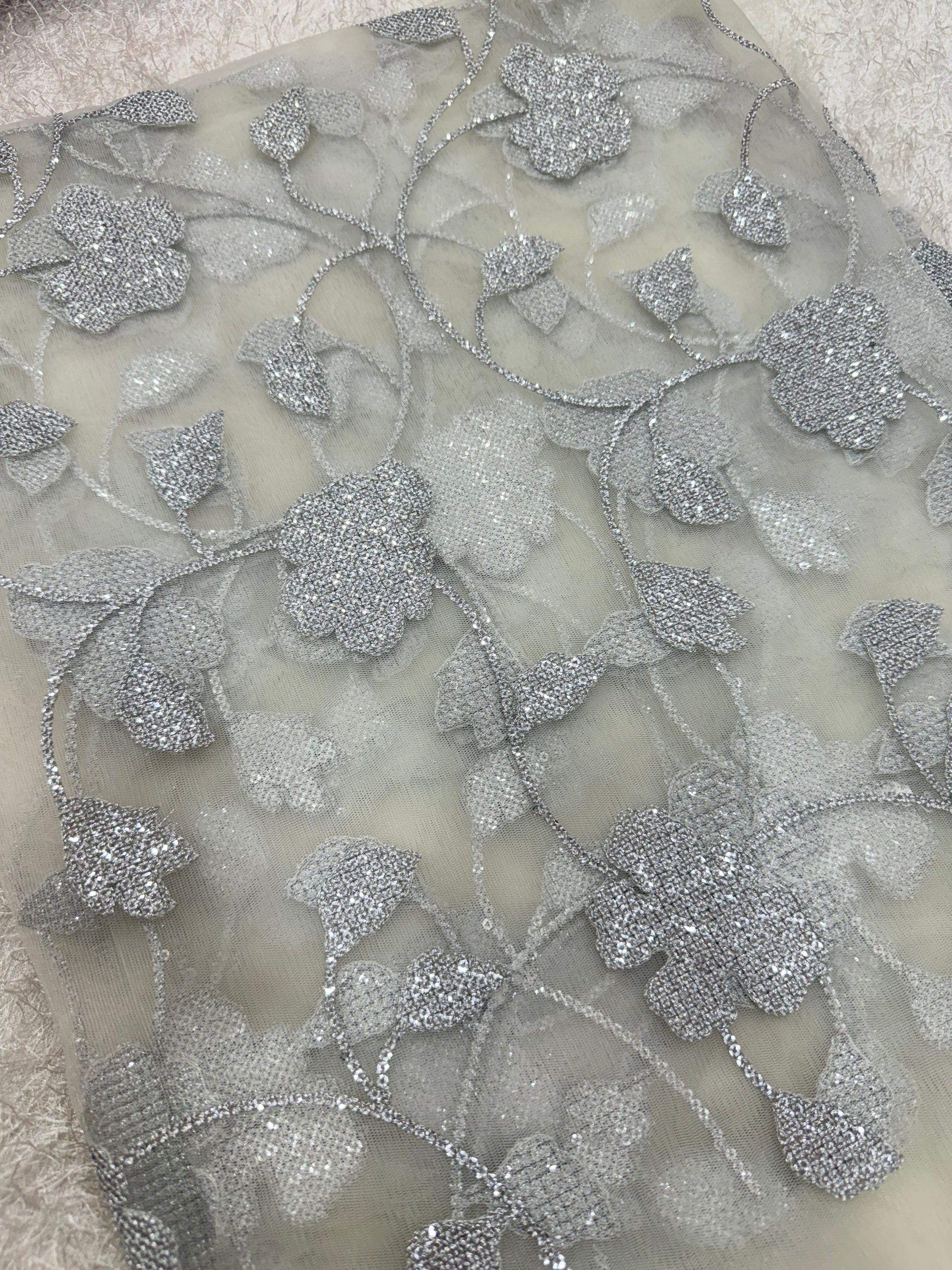 Embroidery on net fabric 1.4 metres cut