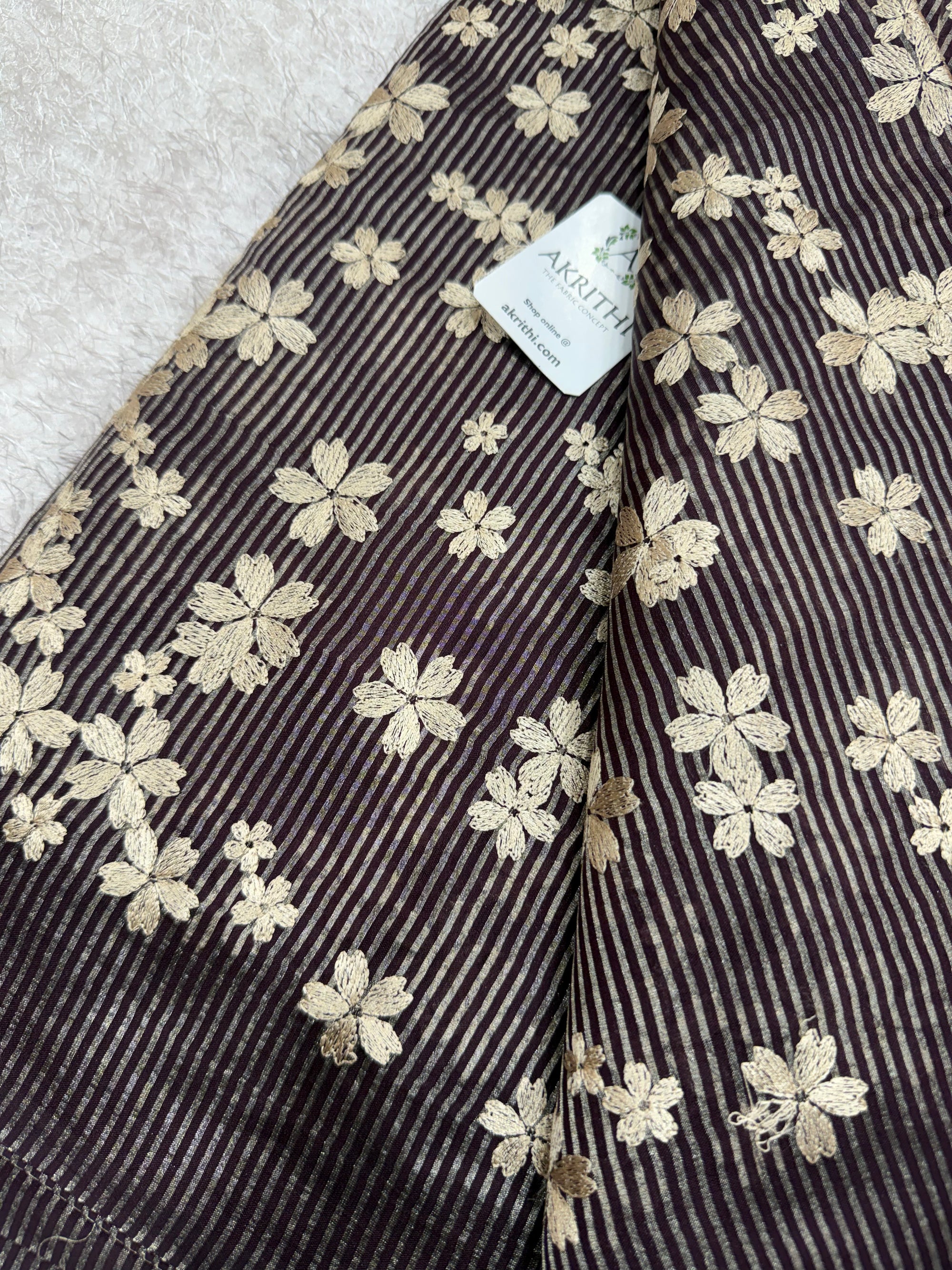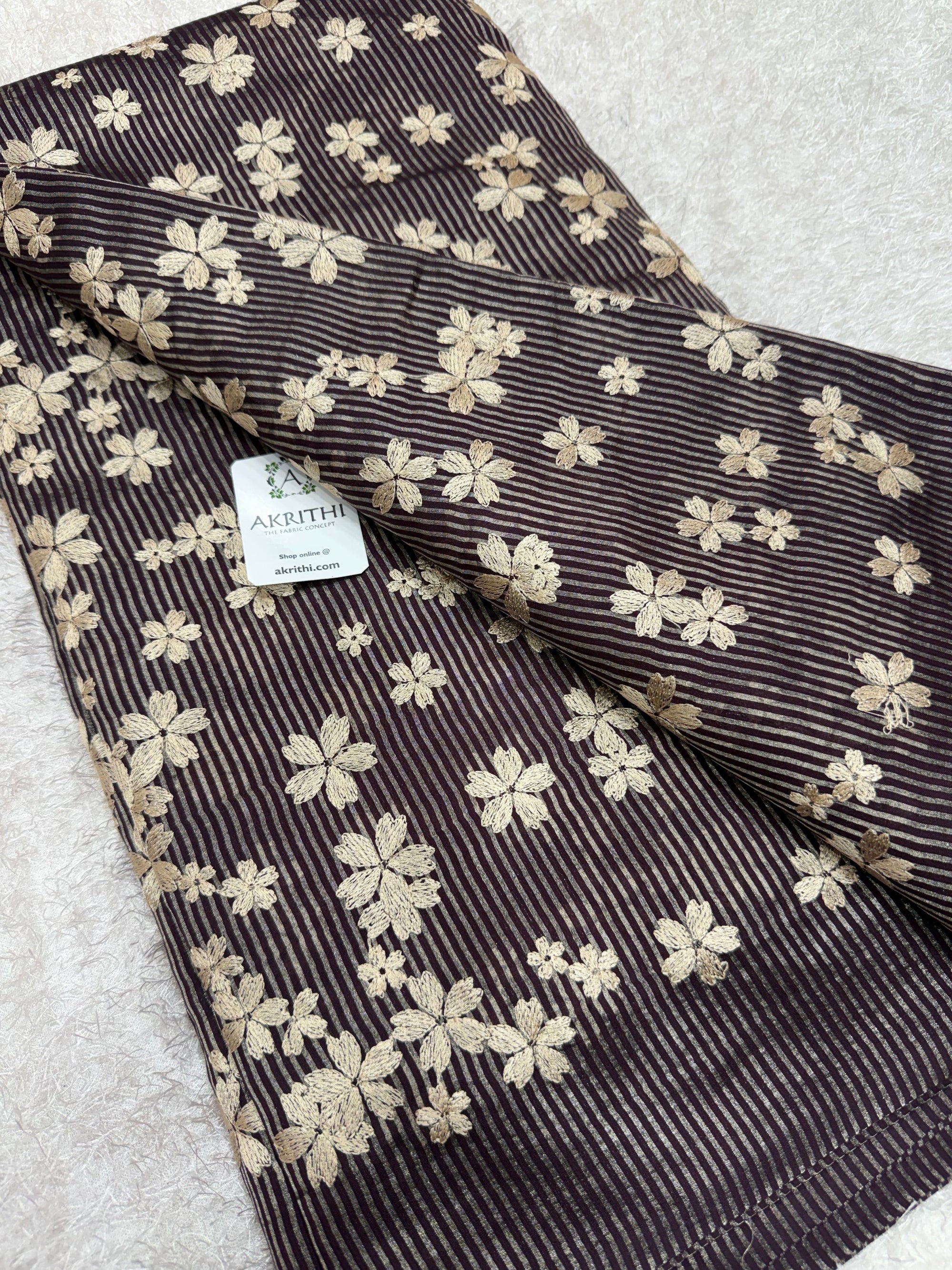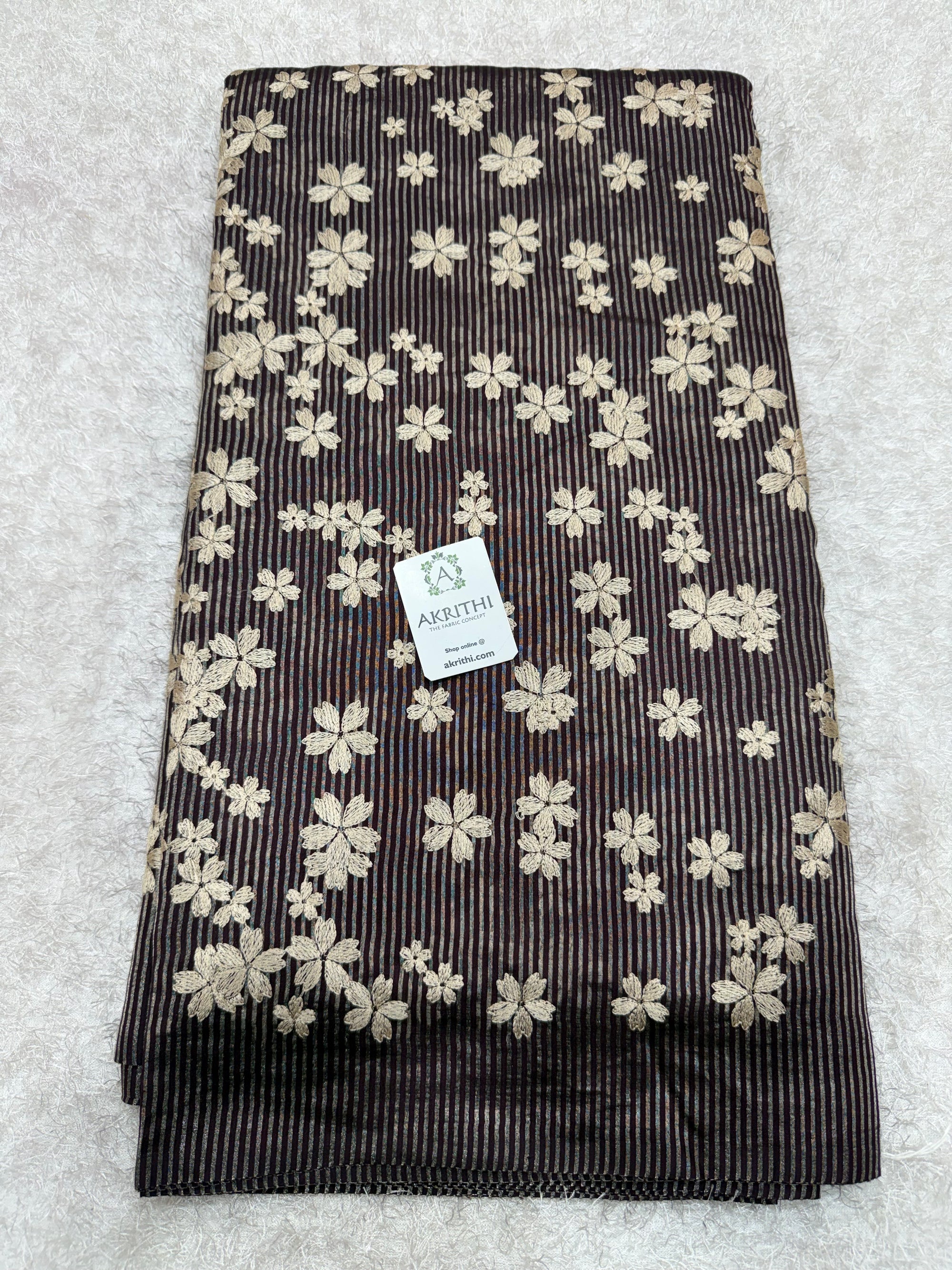 Embroidered striped pure Chiniya silk fabric
