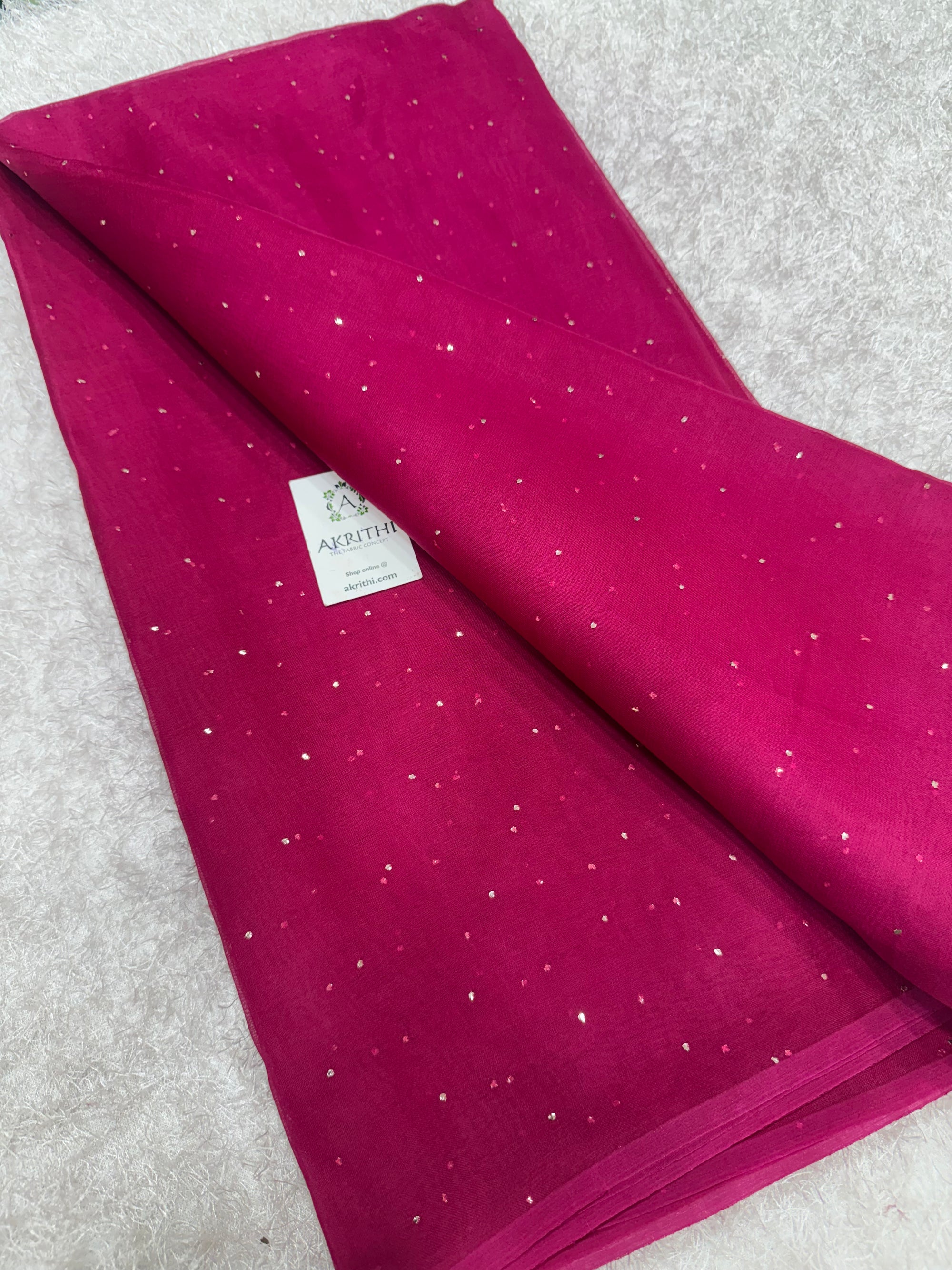 Hand mukaish work pure silk organza fabric